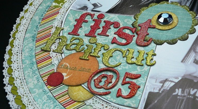 8) Add title to the top of the die cut. I used Expressions glitter alphabets. I also used a Heidi Swapp clear clock die cut under the title.